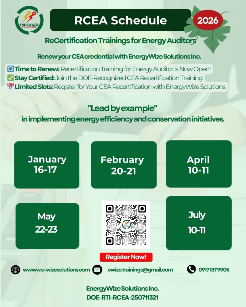 The Recertification Training for Energy Auditors is a 2-day advanced program designed to support accredited Energy Auditors in renewing their certification with the Department of Energy (DOE). This training ensures that participants remain updated on the latest policies, technical methodologies, and industry best practices in energy auditing and energy efficiency project evaluation.